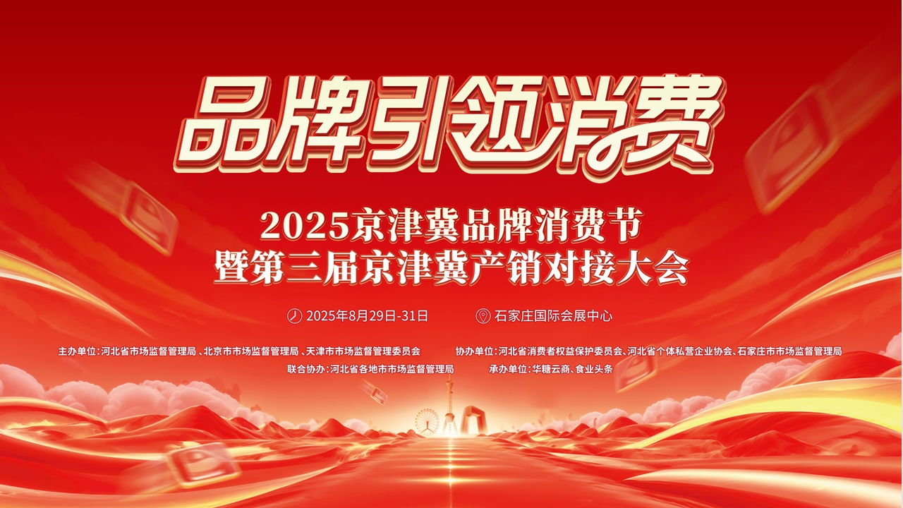 聚勢同行·共啟新程。8月28-31日,在石家莊國際會展中心舉行2025京津冀品牌消費節(jié)暨第三屆京津冀產(chǎn)銷對接大會。本次活動由河北省市場監(jiān)督管理局、北京市市場監(jiān)督管理局、天津市市場監(jiān)督管理委員會主辦,華糖云商、食業(yè)頭條承辦。